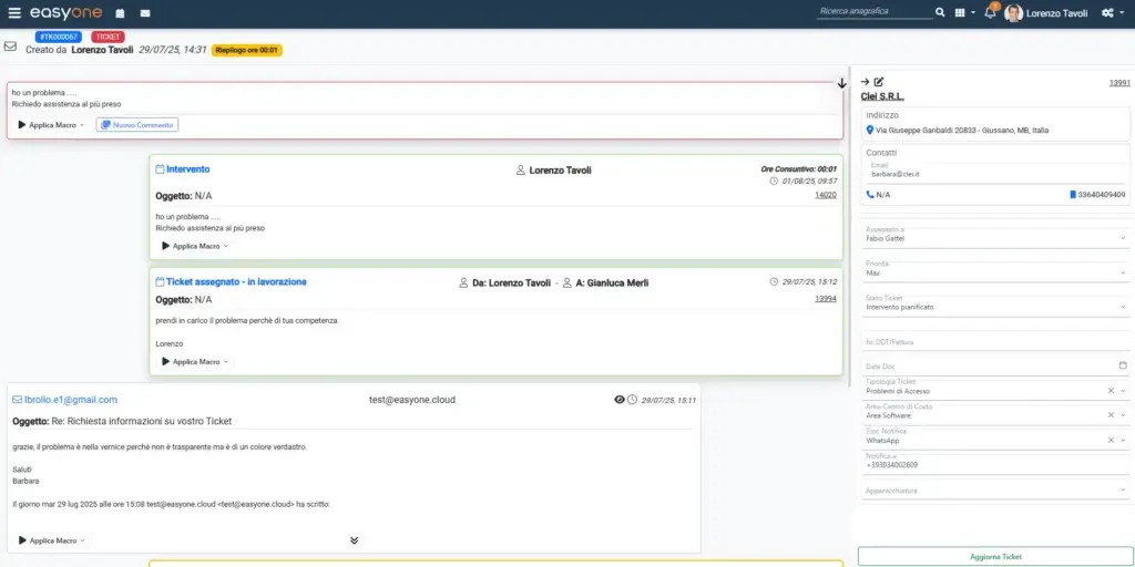 “Gestiamo oltre 200 interventi tecnici al mese. Con Easyone abbiamo ridotto i tempi di chiusura ticket del 40%.”